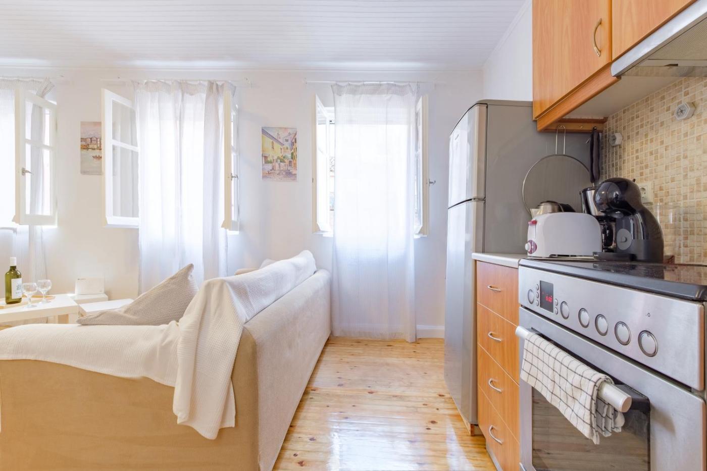 One-Bedroom Apartment. This air-conditioned apartment comes with 1 living room, 1 separate bedroom and 1 bathroom with a shower. The apartments kitchen, which has a refrigerator and an oven, is available for cooking and storing food. The apartment features a washing machine, a tea and coffee maker, a wardrobe, tumble dryer, as well as a flat-screen TV. The unit has 2 beds.