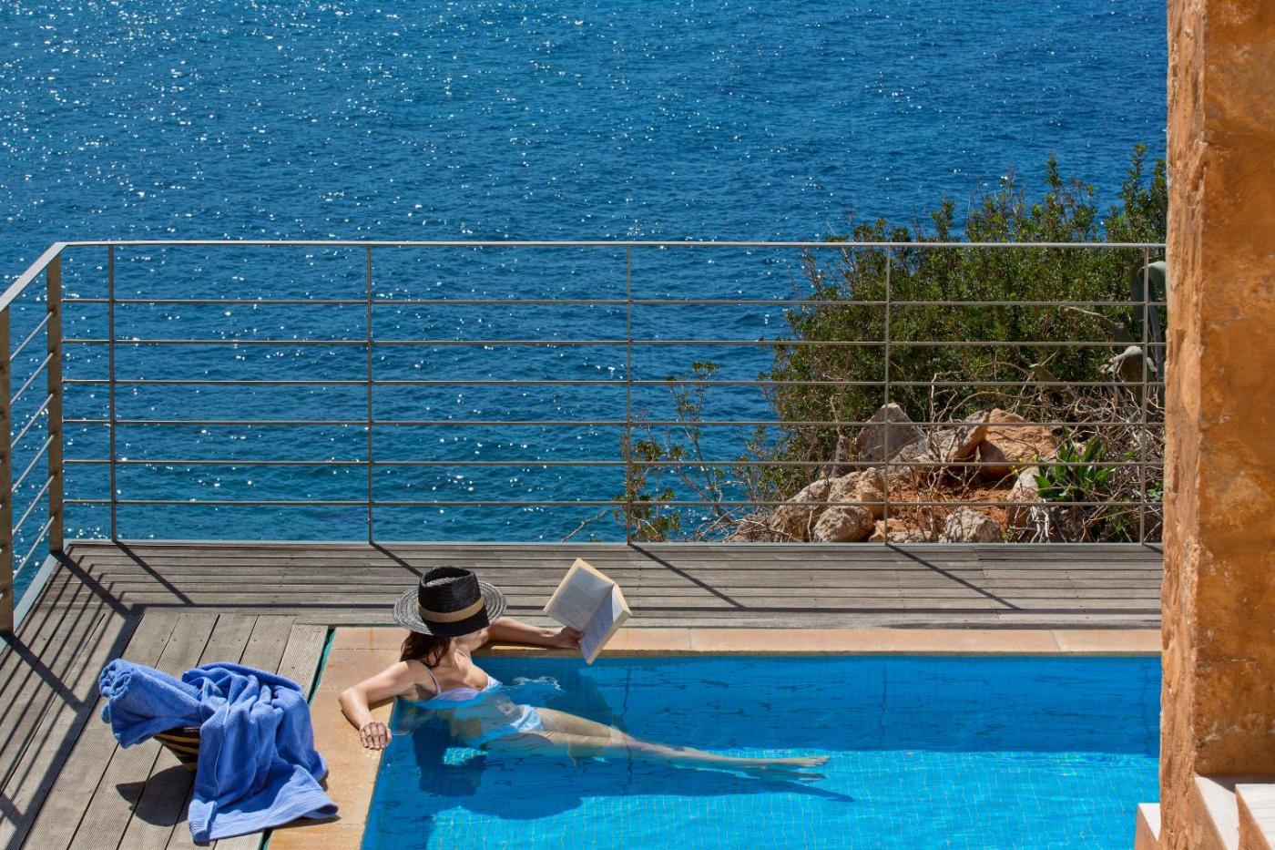 Three-Bedroom Villa with Private Pool. Featuring a private swimming pool and a hot tub, this beachfront, air-conditioned property offers panoramic Mediterranean Sea views and free WiFi throughout. It includes: -a furnished terrace and balcony -a modern, fully equipped kitchen and a dining area -a living room with a sofa and a satellite, flat-screen TV with DVD player -2 bathrooms, one with a spa bath and one with a shower -free toiletries -BBQ facilities. ;