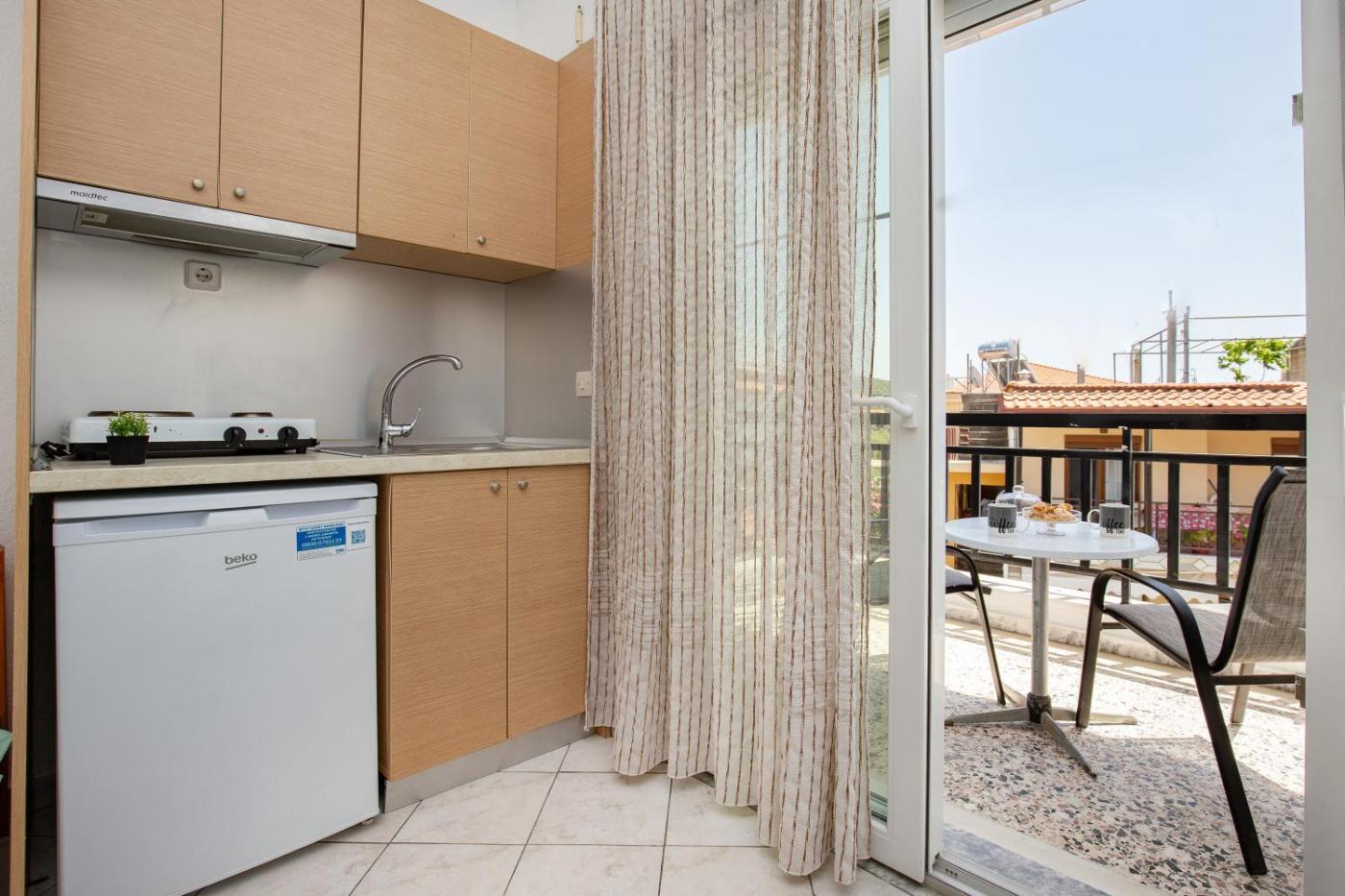 Quadruple Room. Guests can make meals in the kitchen that has a stovetop, a refrigerator, kitchenware and a tea and coffee maker. The quadruple room features air conditioning, soundproof walls, a terrace with city views as well as a private bathroom boasting a shower. The unit has 2 beds. ;